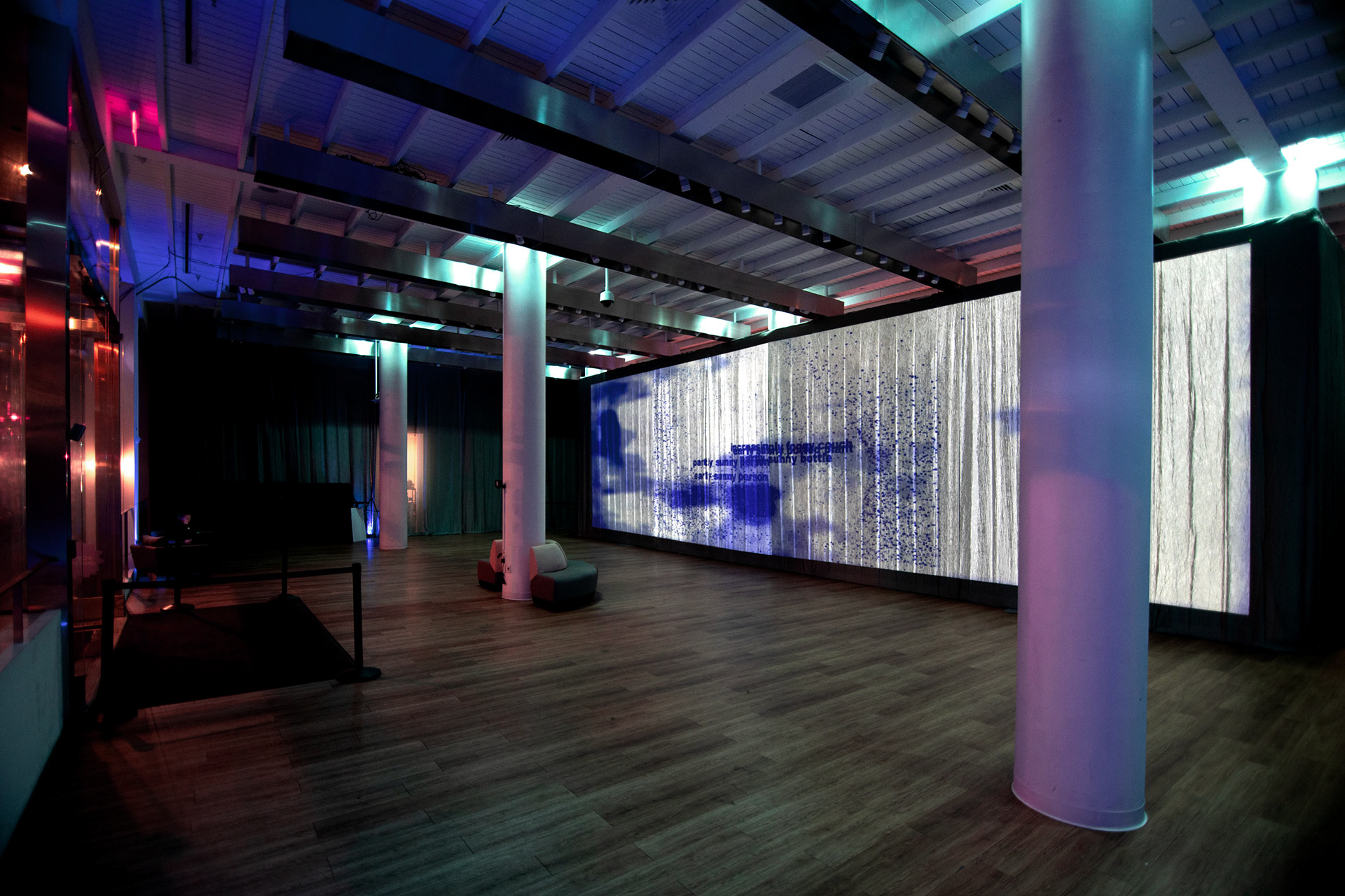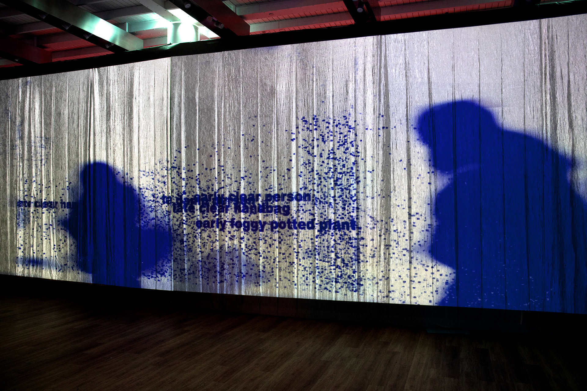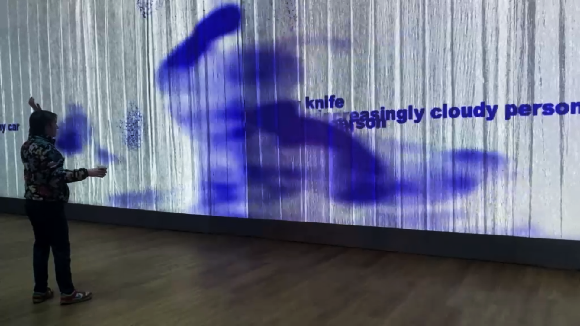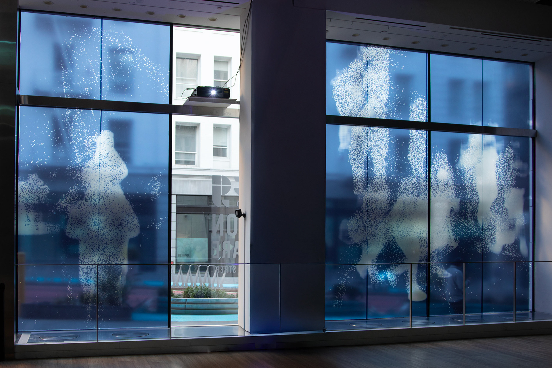 Description: Installation with AI generated text, sound, and graphics using live video capture from street and inside exhibition space