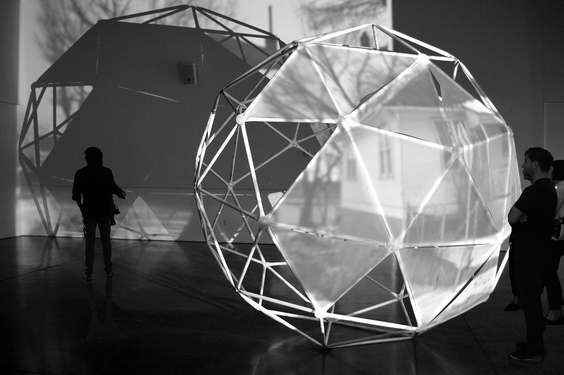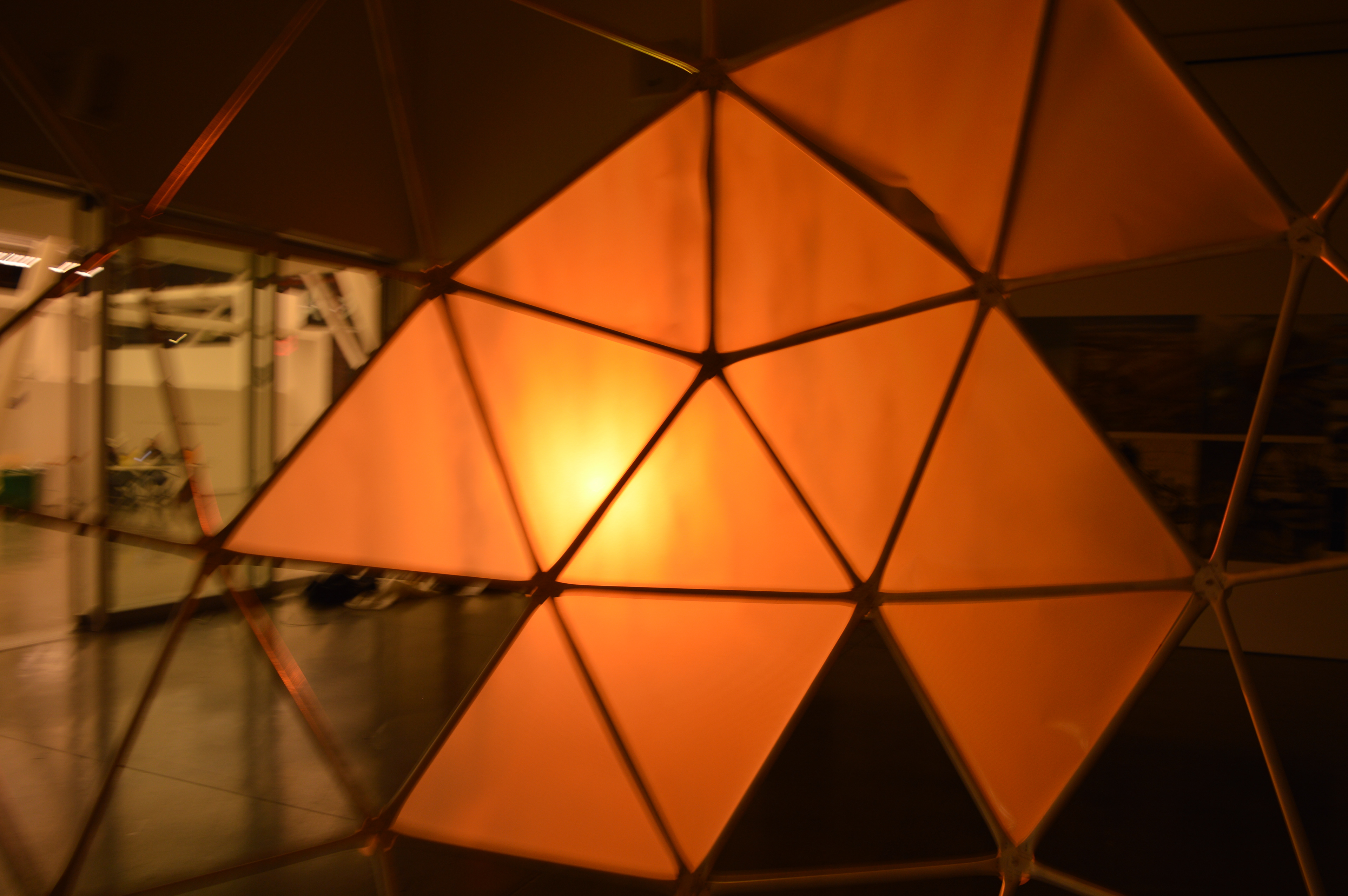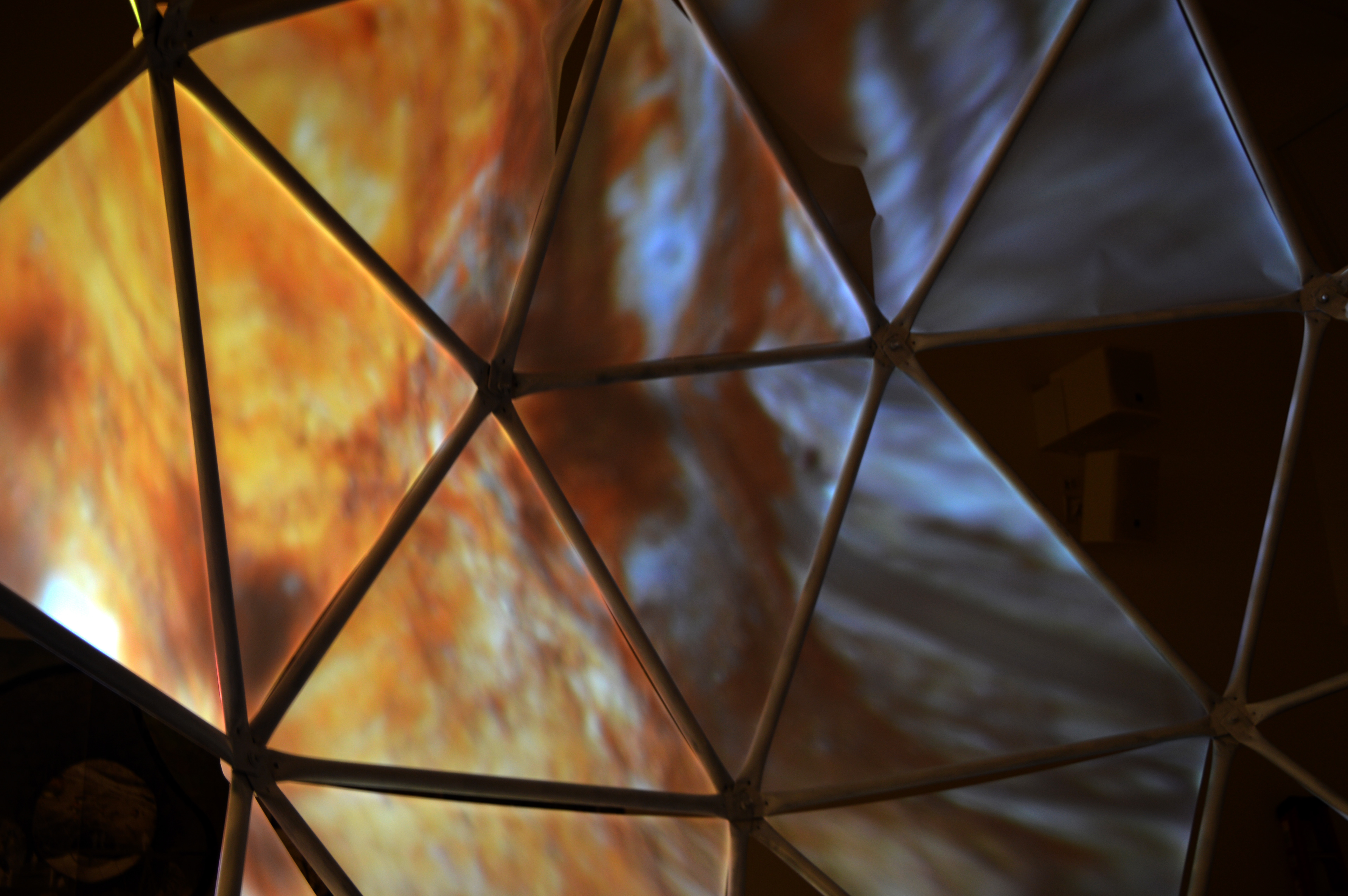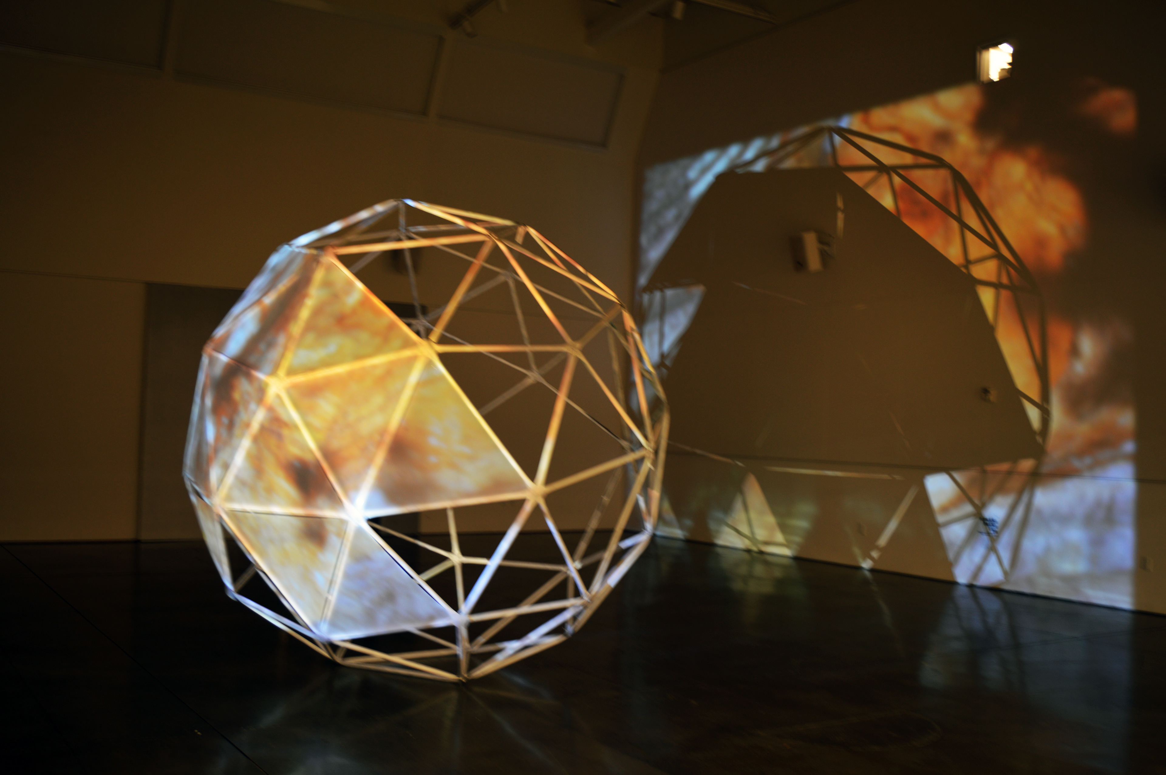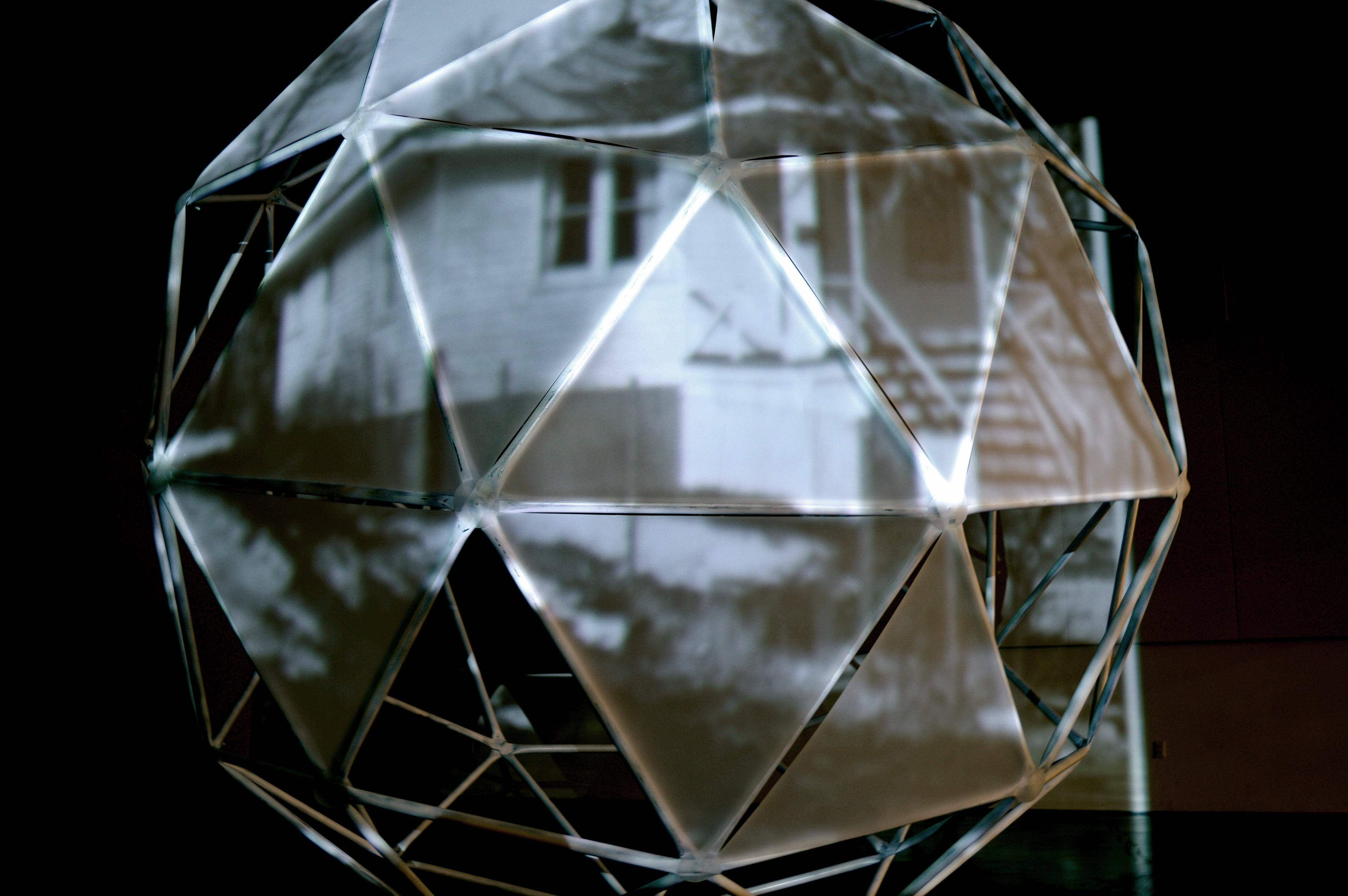 Description: Installation with video projection, sound, geodesic sphere, and mylar