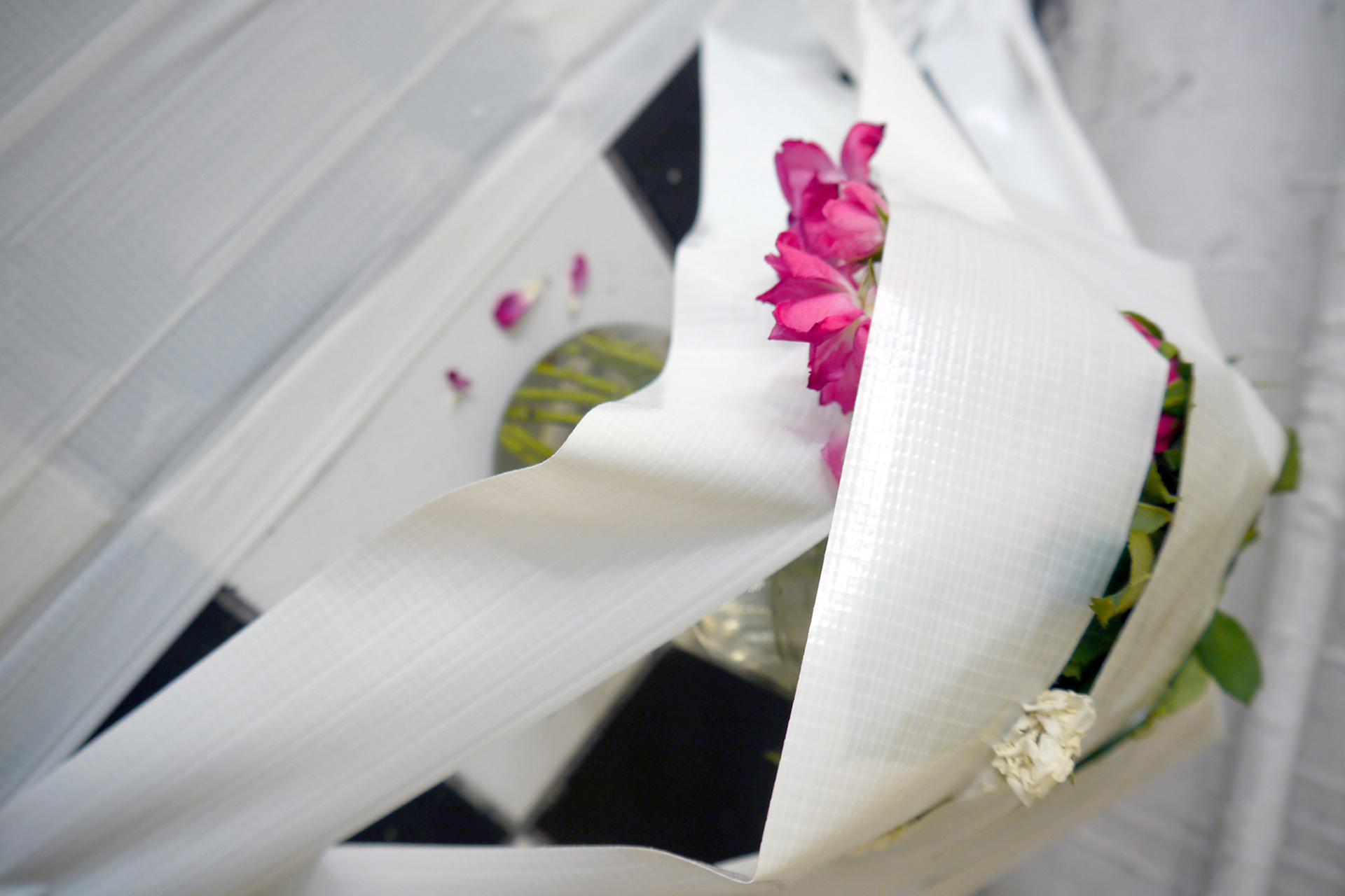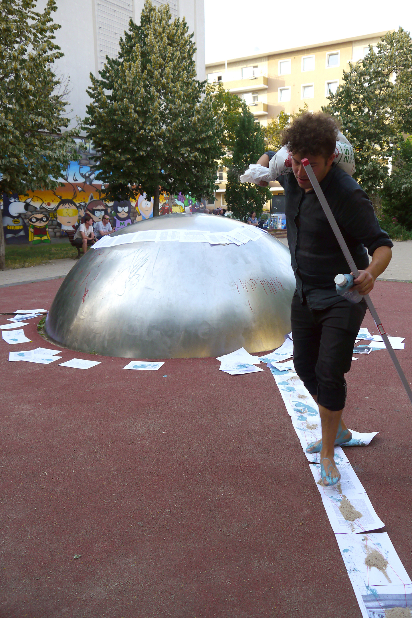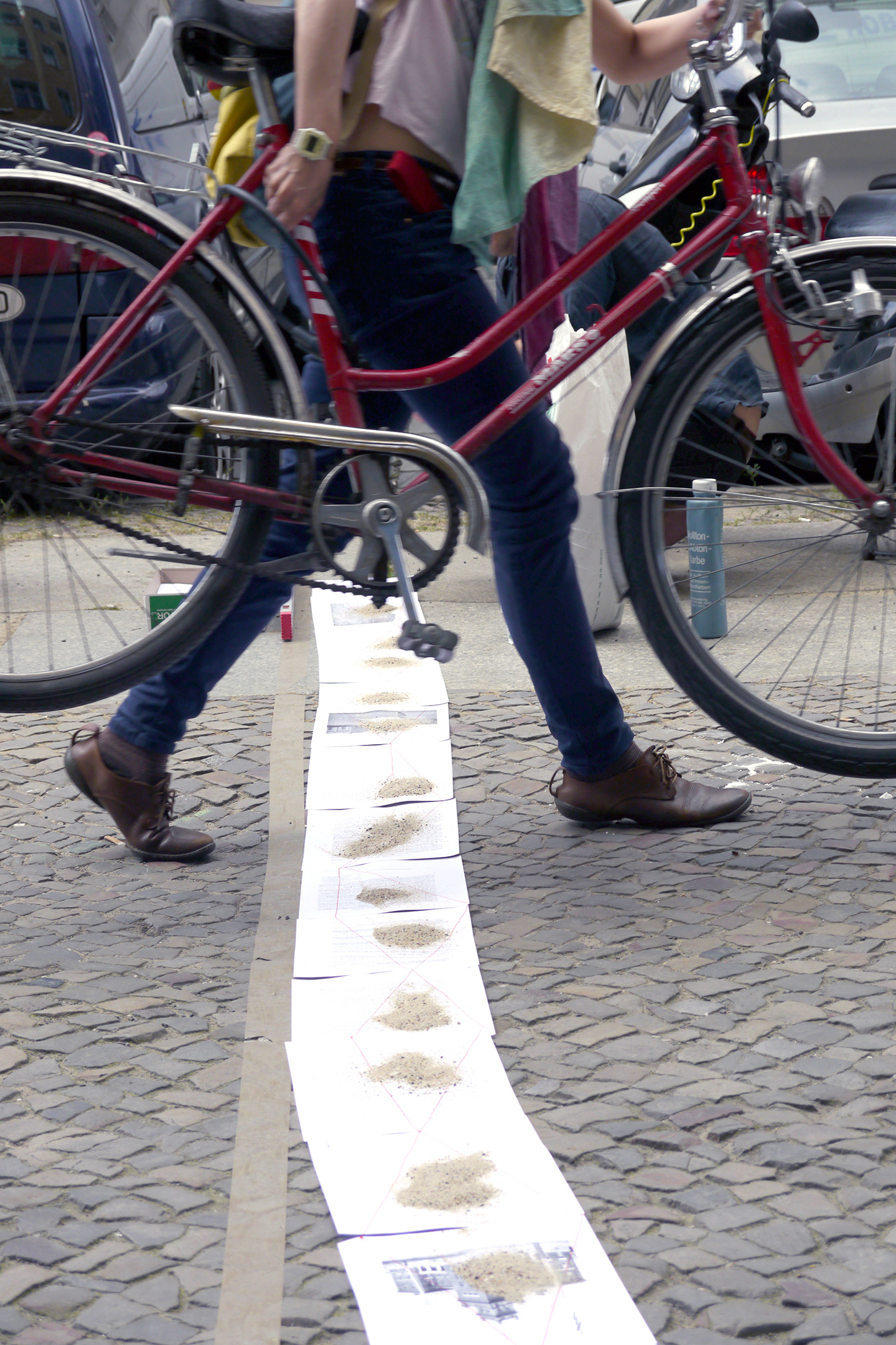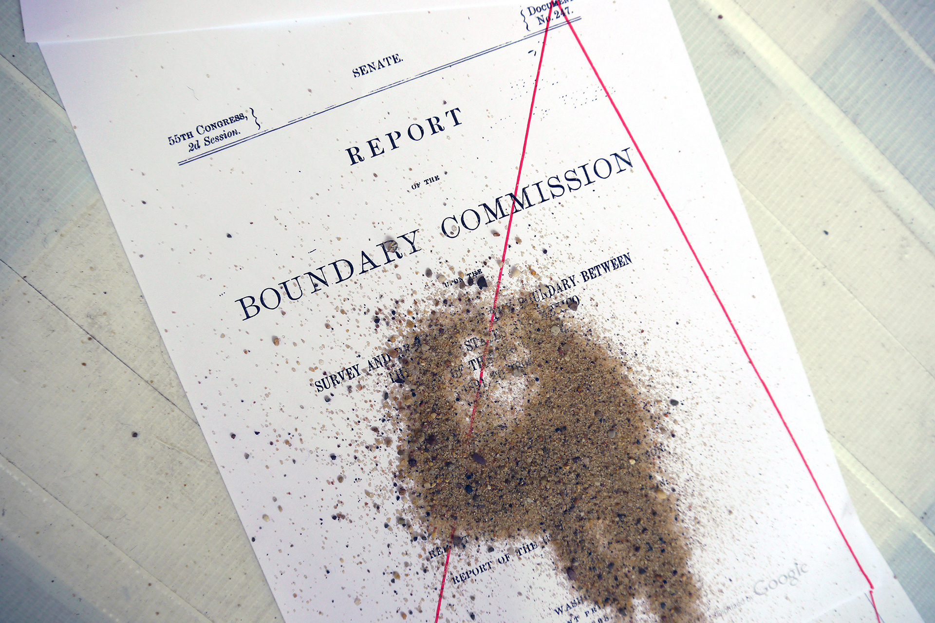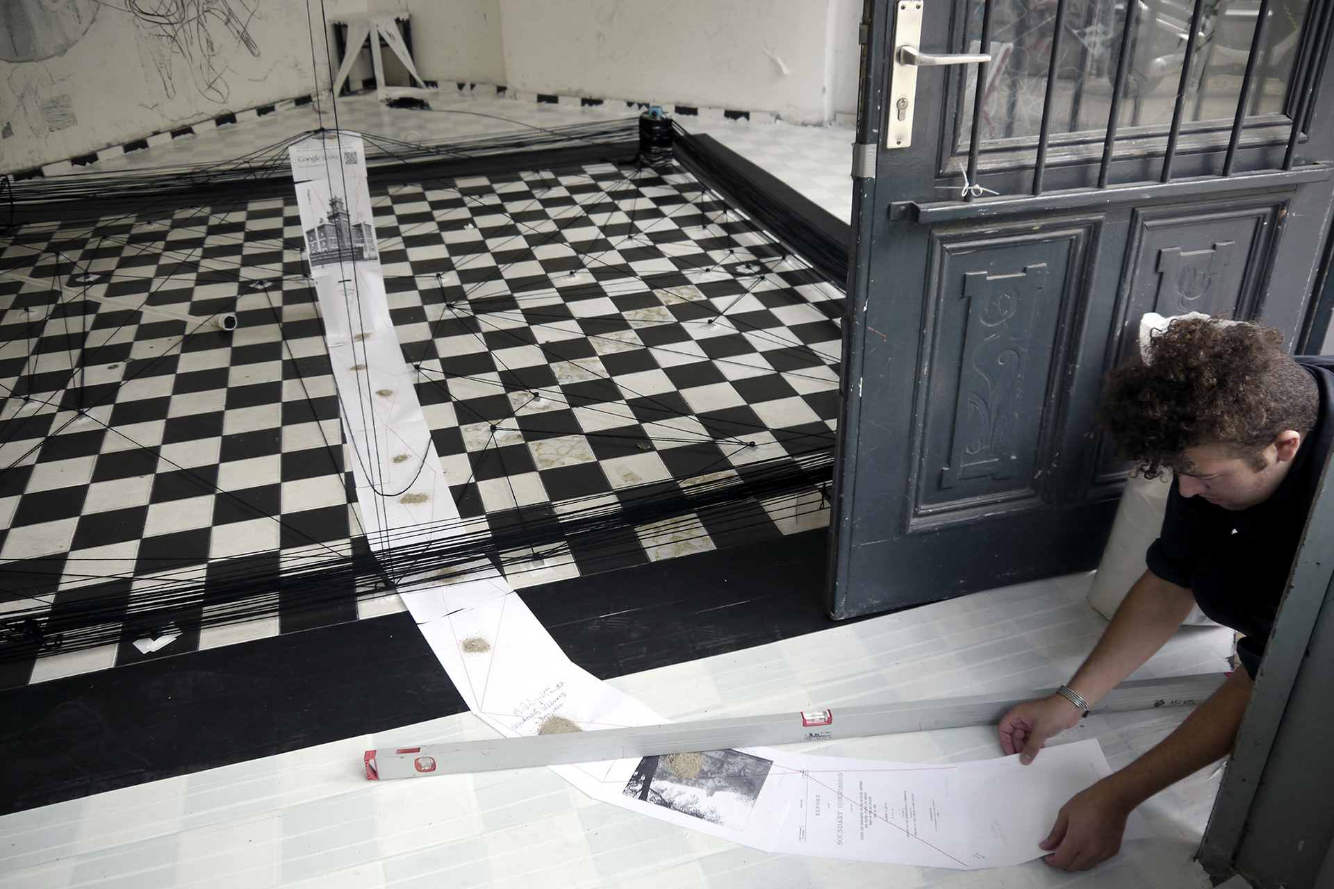 Description: Three 8-hour performance / installation with tape, yarn, concrete, video, paper, sand, ink, and paint